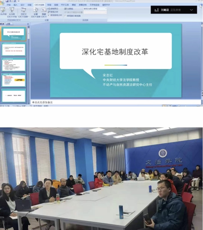 师生作了题为“深化宅基地制度改革”的线上学术讲座。讲座依托“钉钉”平台,线上线下同时进行,副院长宋戈教授主持讲座,土地资源管理系主任吕晓教授、系党支部书记王玉波教授、刘馨蕊老师、刘蜀涵老师,法学系主任隋军副教授、赵进华老师及三十余位博士、硕士研究生在文管A210襄平会议室集中参加,三十余位老师和同学在线上参加。