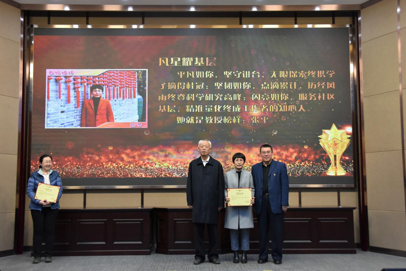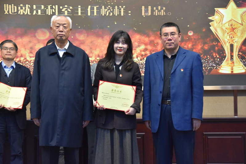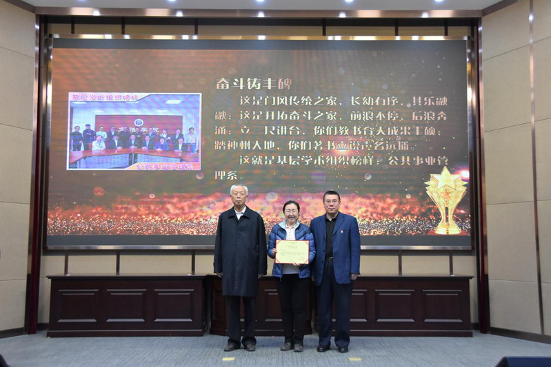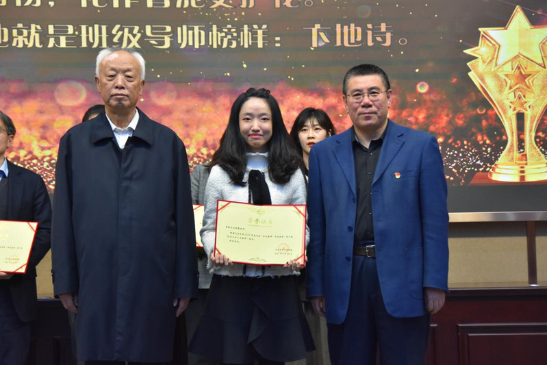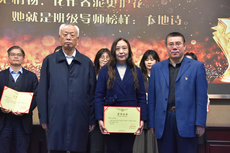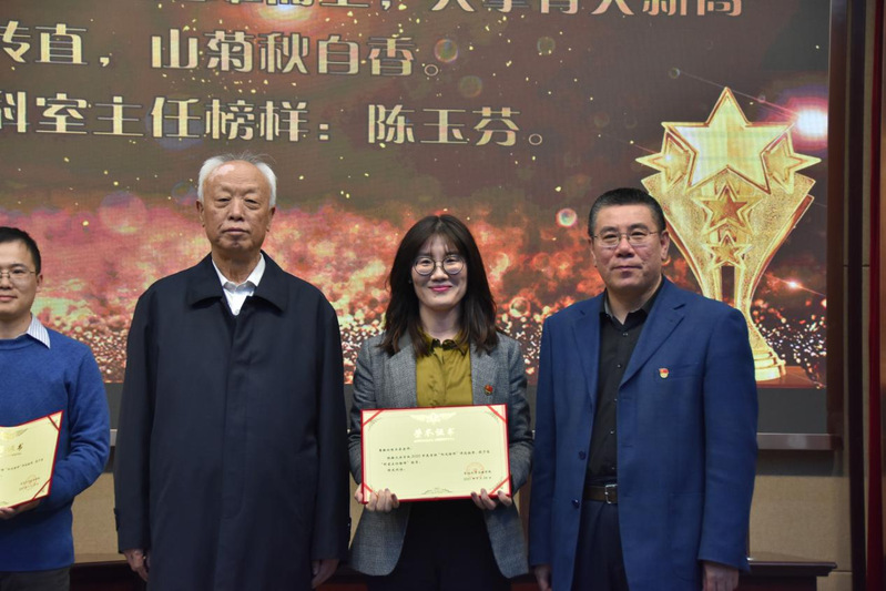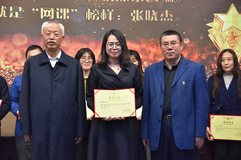会议第三项,举行2021年度“阳光榜样”颁奖仪式。在仪式开始之前,会议主持首先播放了2020网课记忆视频,勾起了全体教师对于网课历程点点滴滴的回忆。院长张雷依次宣读了颁奖词,并请娄成武老师、隋书记为2020年度“阳光榜样”颁奖。
