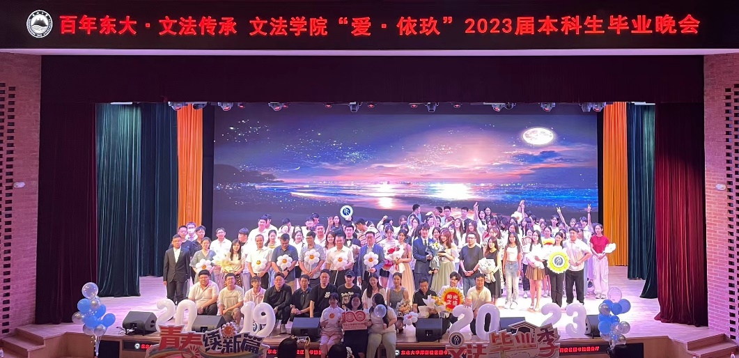 院长张雷,党委书记隋永强,副院长杜宝贵,党委副书记、纪委书记孙宏伟,党委副书记、副院长(兼)夏风云,副院长李丹,教师代表,2023届全体本科毕业生参加晚会。