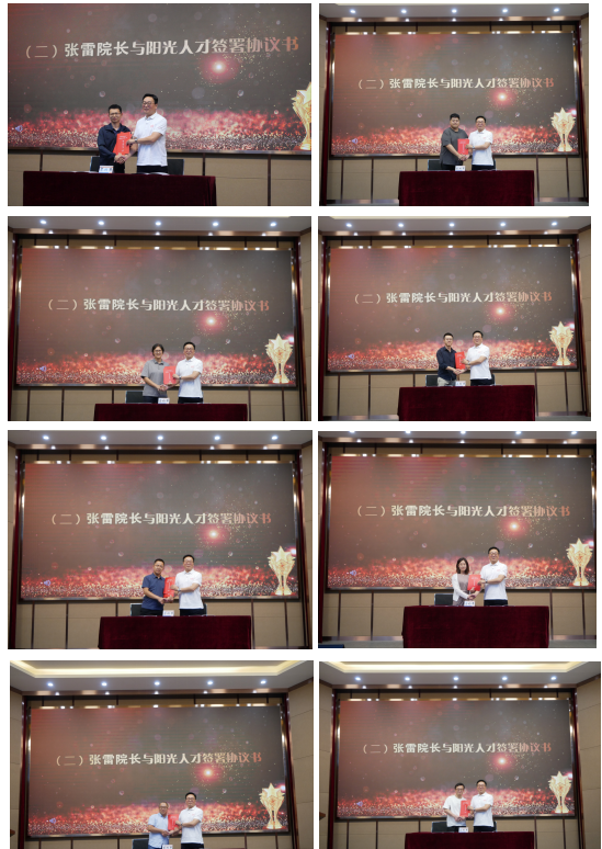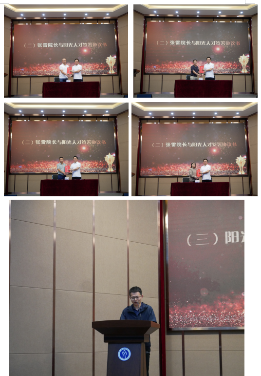 党委书记隋永强宣读“阳光人才”培养文件。院长张雷依次与“阳光人才”签署培养协议书。曹志立作为“阳光人才”教师代表发言。