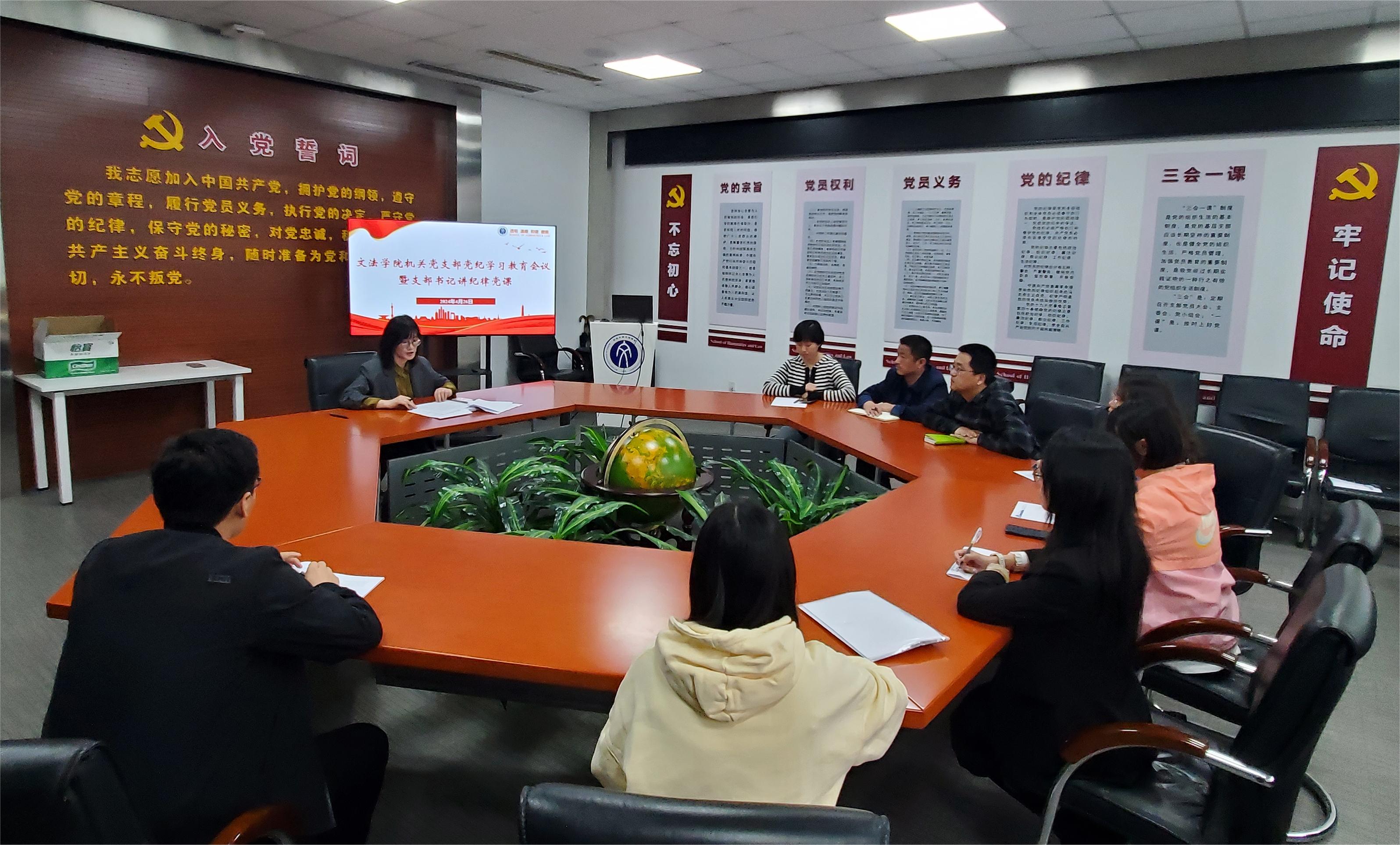4月26日下午,血流成河麻将 机关党支部在浑南校区血流成河麻将 A202会议室,召开党纪学习教育会议,血流成河麻将 党委委员、副院长李丹作为普通党员参加支部活动,支部书记陈玉芬为支部成员讲纪律党课。