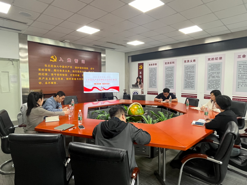 甘霖围绕新修订的《中国共产党纪律处分条例》的修订背景、意义和条款变化等内容进行解读,在分享学习体会时还谈到了个人对于党风廉政建设和反腐败斗争的认识,强调了学习贯彻《中国共产党纪律处分条例》的重要性。李丹强调,全体党员干部应以《中国共产党纪律处分条例》学习为契机,严于律己,做到“筑牢思想防线、不踩纪律红线、不触道德底线、不碰法律高压线”。与会支部成员就党的政治纪律、组织纪律、群众纪律的学习体会作交流发言。