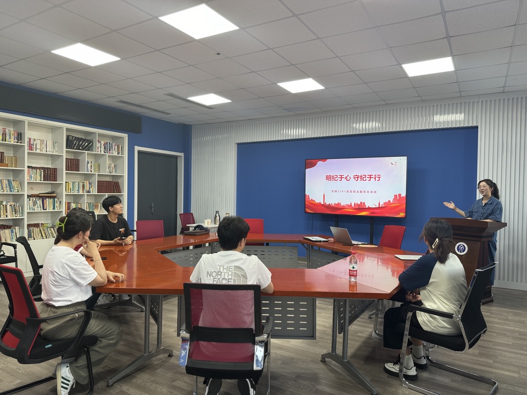 A215室开展“明纪于心 守纪于行”党纪学习教育主题党日活动,党支部书记许萌哲主持活动,支部全体党员参加。