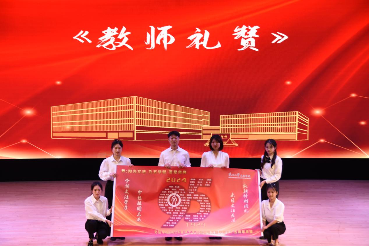 长期以来工作在教学、科研、管理一线的老师们致以崇高的敬意和诚挚的感谢,并对同学们提出期望,希望文法学子能做如玉的君子、学术的巨人、前行的勇者。
