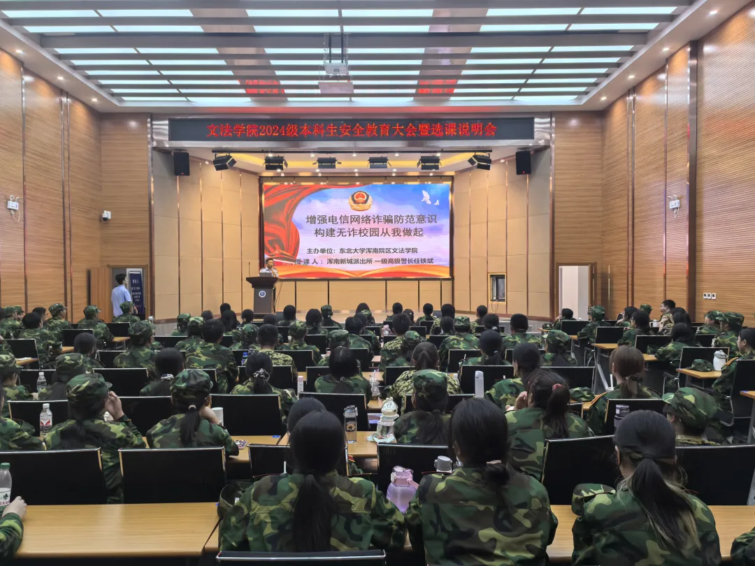 召开2024级本科生安全教育大会,邀请浑南新城派出所的警长就相关安全问题为同学们进行普法教育,提高了同学们的守法意识以及安全意识。