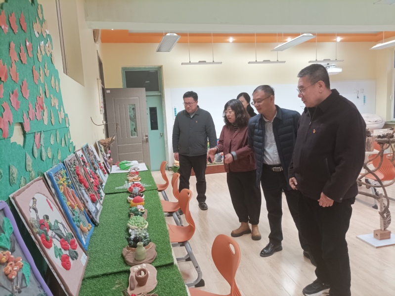 座谈会结束后,与会人员前往深井子小学进行调研,参观学生美术展览,了解血流成河麻将