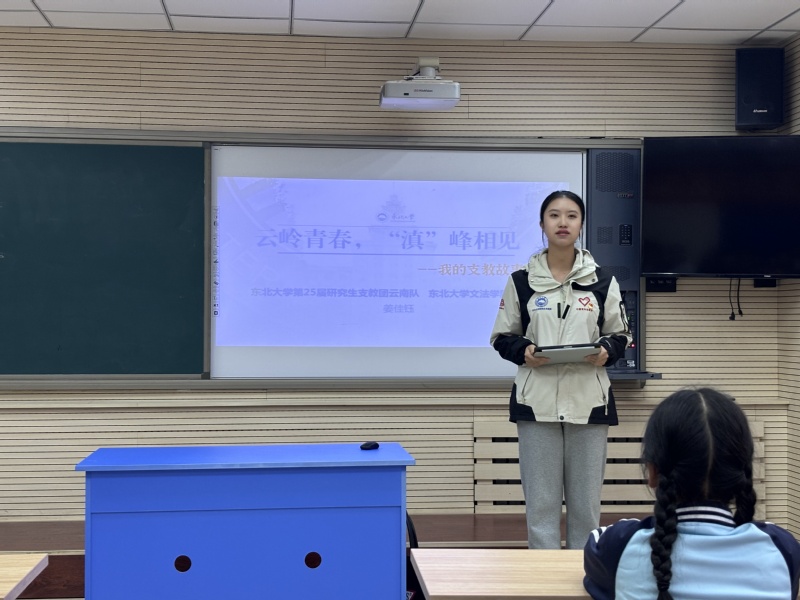 办学特色。东北大学第25届研究生支教团云南队成员姜佳钰同学为小学生们作成长报告,分享了自己在支教过程中的工作经历和志愿服务心得体会。在双方交流环节,小学生们针对支教和大学生活踊跃提问,姜佳钰和发展对象们进行了一一解答。